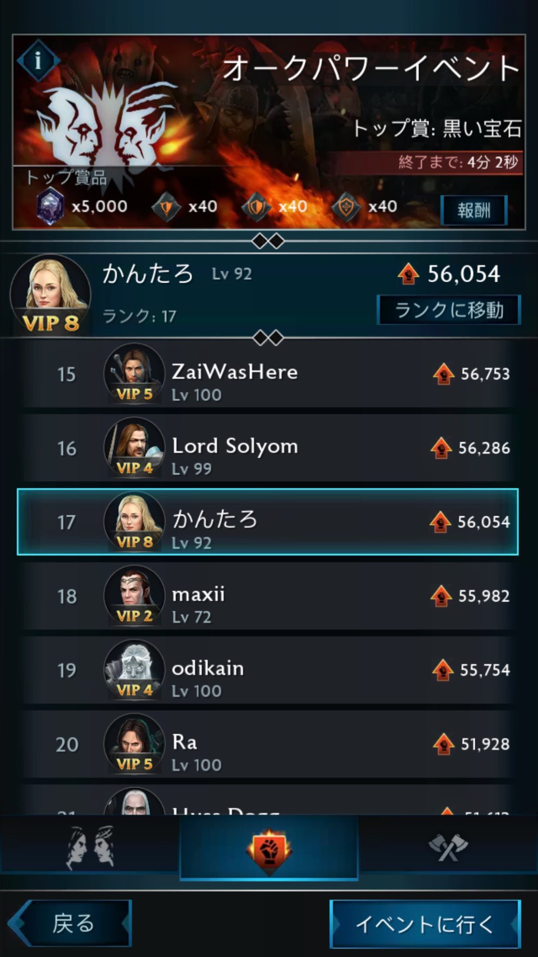 ・期間内にオークのパワーを上昇させた合計値を競い合うイベント。